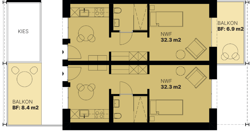 - 14 x 1.5-Zimmer-Wohnungen (32.3 m²)